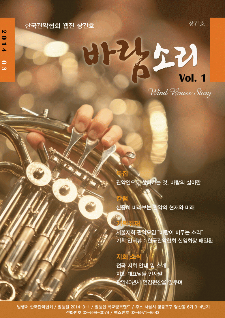 한국관악협회 웹진 "바람소리" 창간호 게재안내 페이지 정보 작성자 한국관악협회 (221.♡.70.221) 작성일14-02-08 15:14 조회5,041회 댓글0건 관련링크 이전글 다음글 목록 본문 2014년 6월 한국관악협회의 웹진 - "바람소리"가 창간됩니다.많은 관심과 성원 부탁 드립니다.<바람소리 미리보기> 페이스북 공유 트위터 공유 구글+ 공유 댓글목록 등록된 댓글이 없습니다. 이전글 다음글 목록