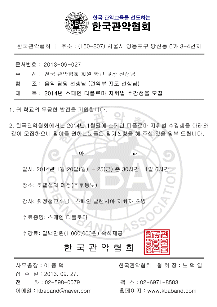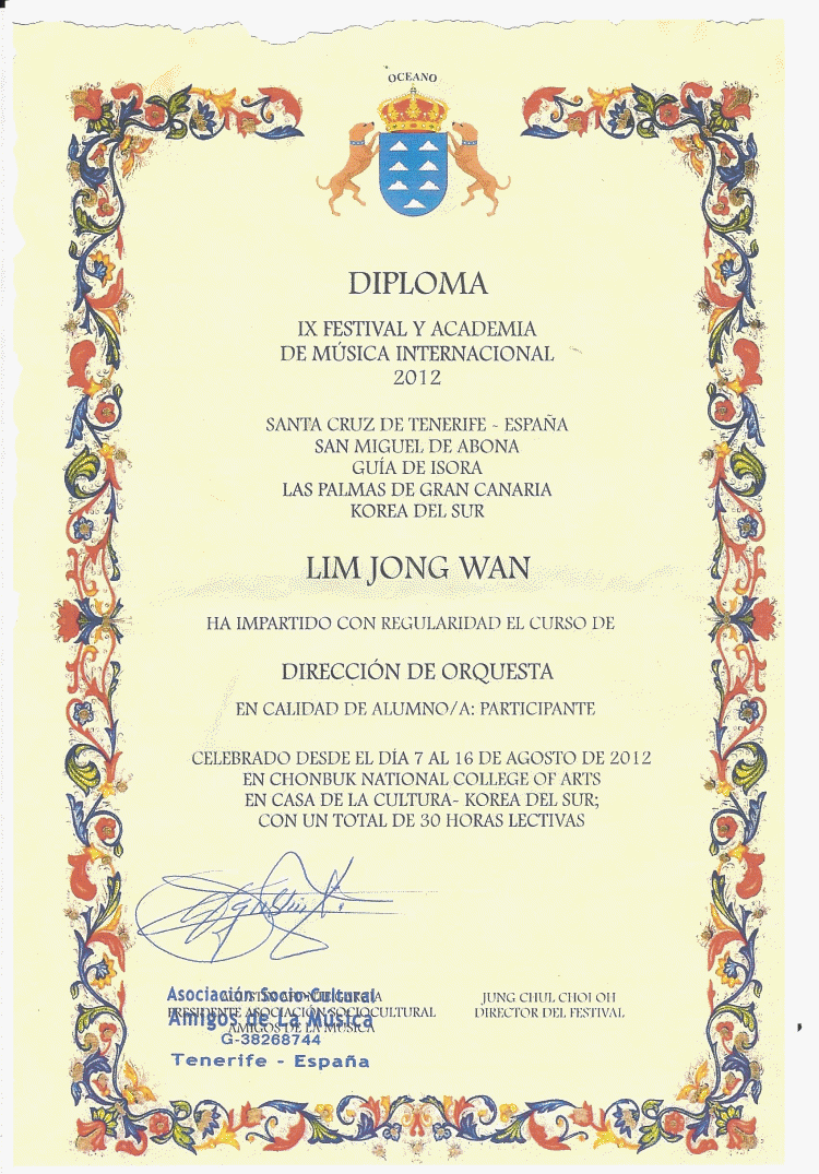 2014년 스페인 디폴로마 지휘법 강의 페이지 정보 작성자 한국관악협회 (211.♡.155.202) 작성일13-08-21 09:57 조회4,896회 댓글0건 관련링크 이전글 다음글 목록 본문 2014년 스페인 디폴로마 지휘법 강의최정철에 지휘법의 정석 스페인 디플로마 입니다. 페이스북 공유 트위터 공유 구글+ 공유 댓글목록 등록된 댓글이 없습니다. 이전글 다음글 목록