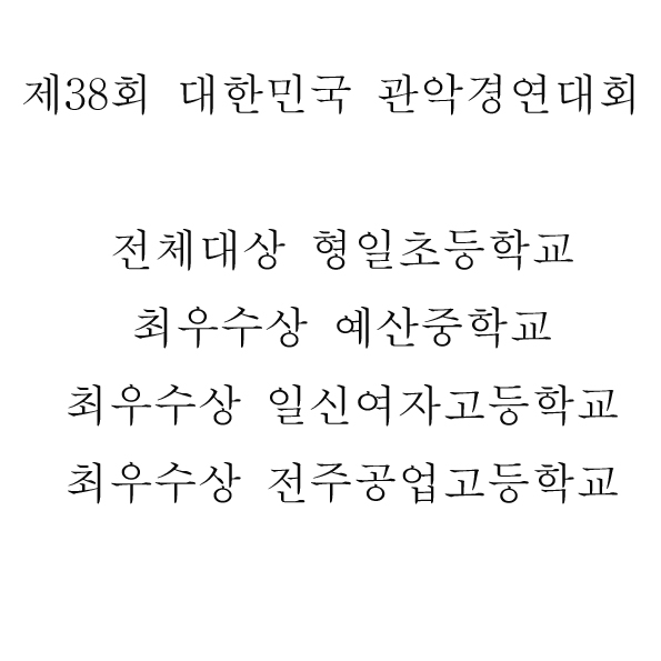 제38회 대한민국 관악경연대회 수상내역 공지입니다. 페이지 정보 작성자 한국관악협회 (122.♡.220.14) 작성일13-09-09 05:50 조회5,205회 댓글1건 관련링크 이전글 다음글 목록 본문 제38회 대한민국 관악경연대회 수상내역 공지입니다. 페이스북 공유 트위터 공유 구글+ 공유 댓글목록 다우님의 댓글 다우 아이피 117.♡.245.66 작성일 13-09-12 07:54 모두들 고생하셨습니다! 모두들 고생하셨습니다! 이전글 다음글 목록