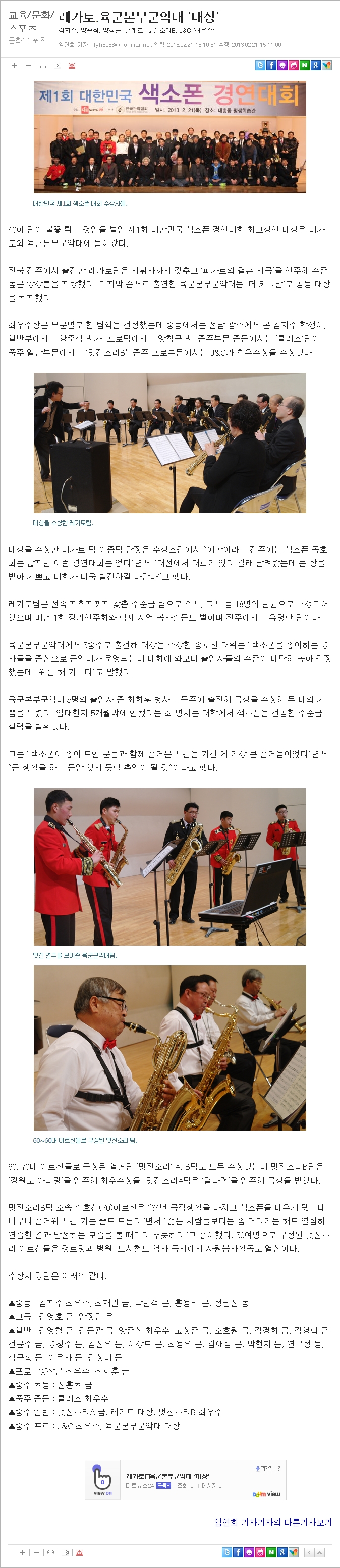 대한민국 색소폰 경연대회 결과발표 페이지 정보 작성자 한국관악협회 (221.♡.228.132) 작성일13-02-21 08:03 조회3,937회 댓글1건 관련링크 이전글 다음글 목록 본문 대한민국 색소폰 경연대회 결과발표 페이스북 공유 트위터 공유 구글+ 공유 댓글목록 piano5님의 댓글 piano5 아이피 119.♡.35.132 작성일 13-02-22 04:16 그동안 운영자분들 고생 많이 하셨습니다~ 그동안 운영자분들 고생 많이 하셨습니다~ 이전글 다음글 목록