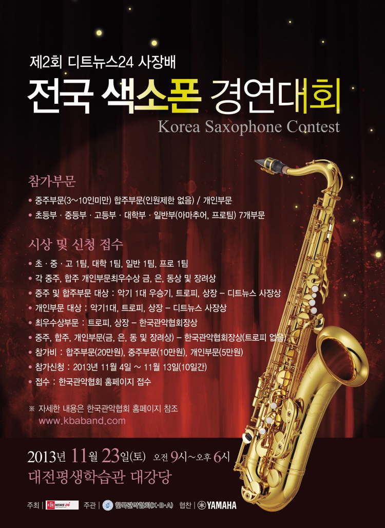 제2회 디트뉴스24 사장배 전국 색소폰 경연대회가 11월 23일 대전평생학습관