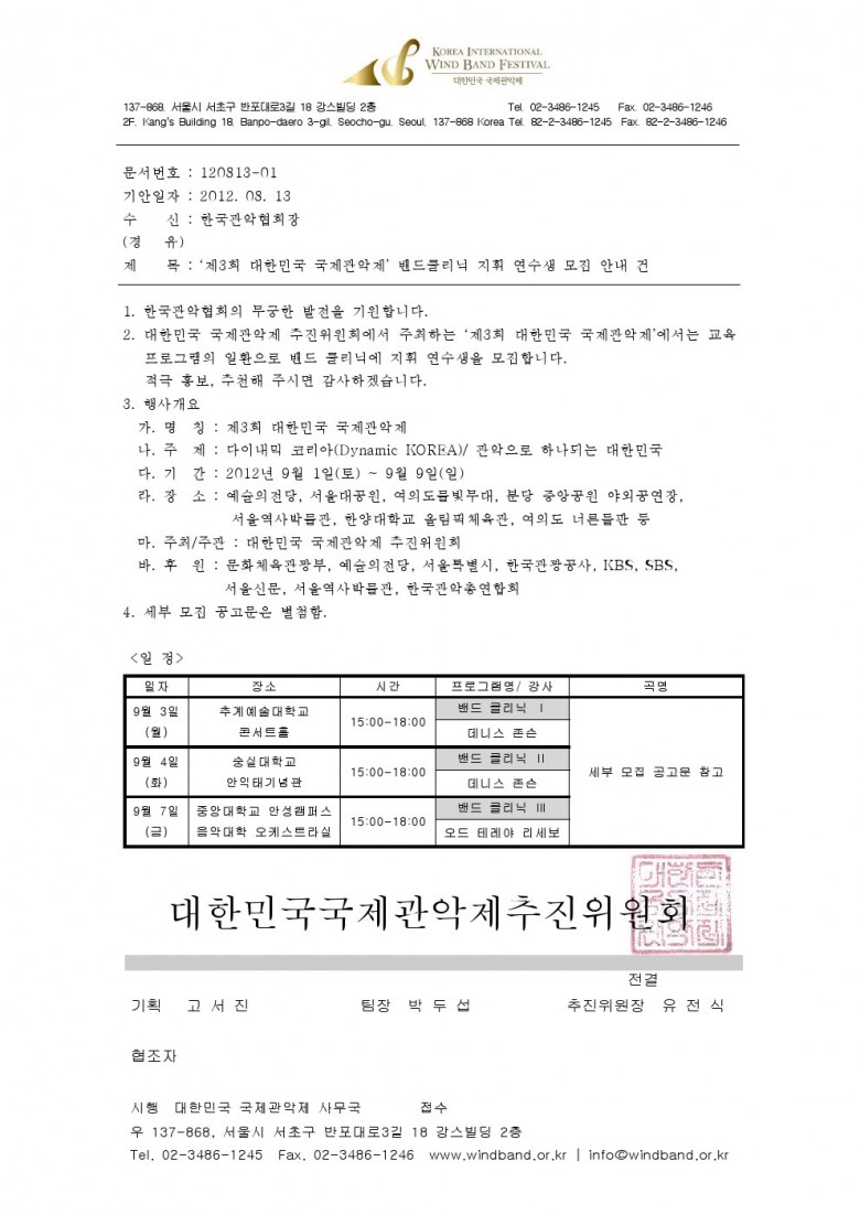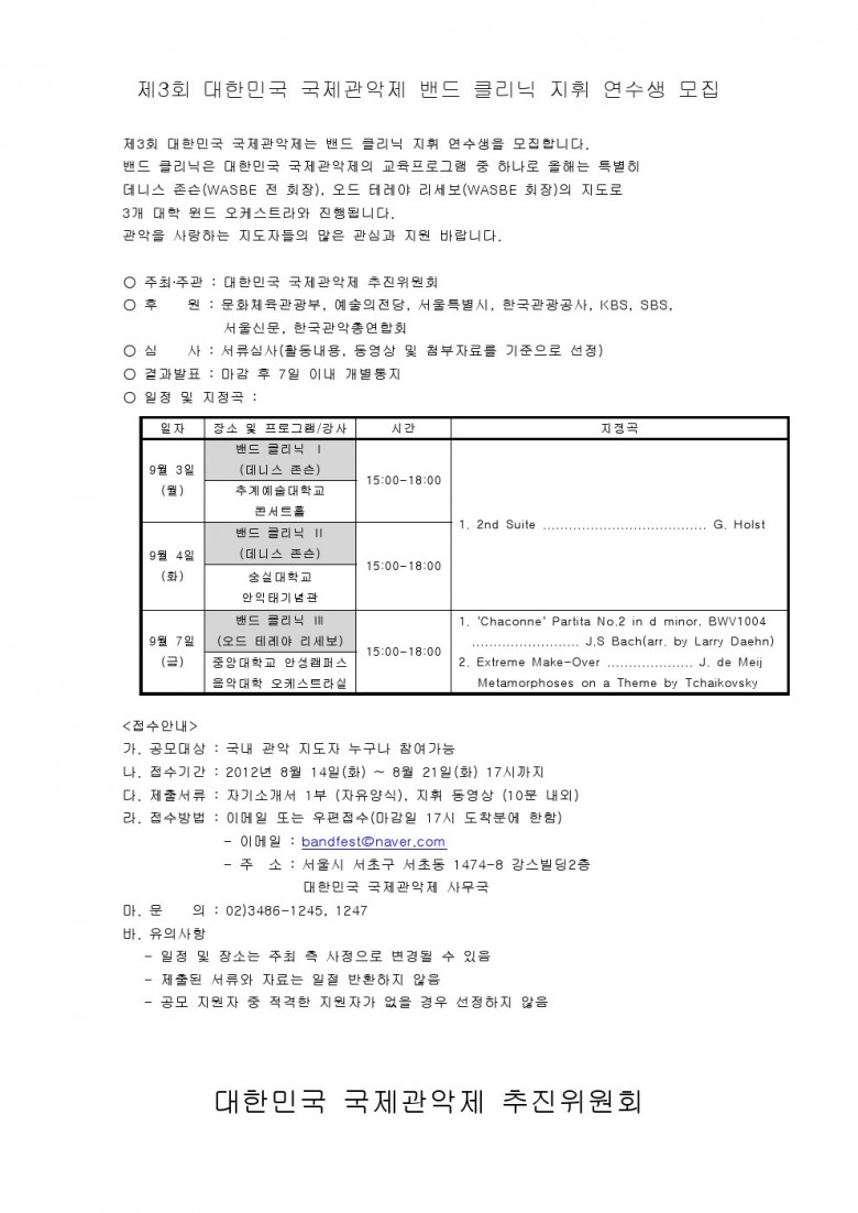 [대한민국 국제관악제] 밴드클리닉 지휘 연수생 모집 안내 공문입니다. .zip