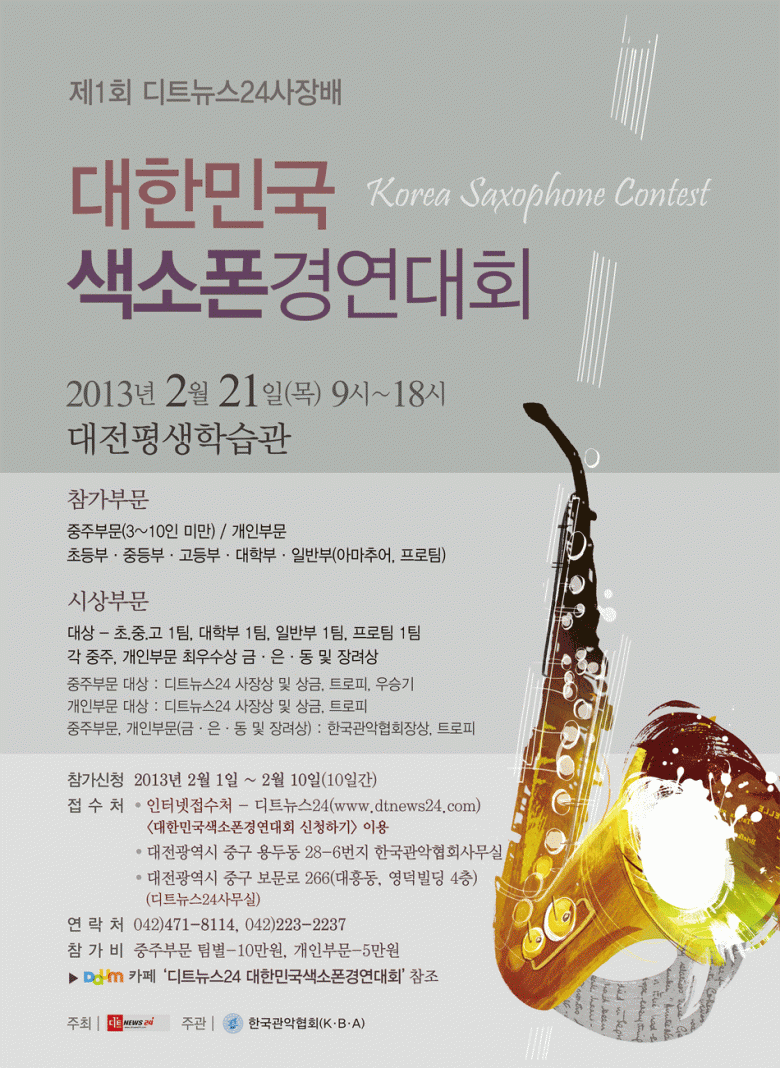 제1회 디트뉴스24시 사장배 대한민국 색소폰 경연대회 포스터