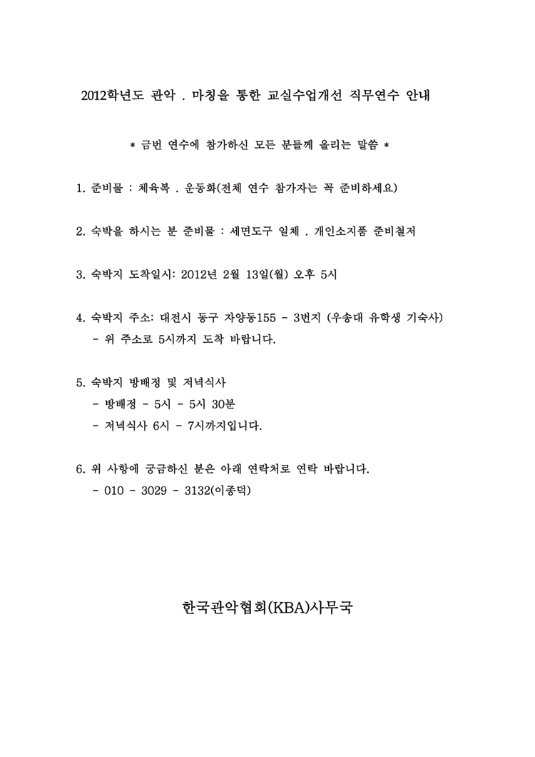 2012학년도 관악 . 마칭을 통한 교실수업개선 직무연수 안내