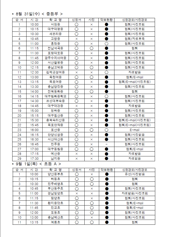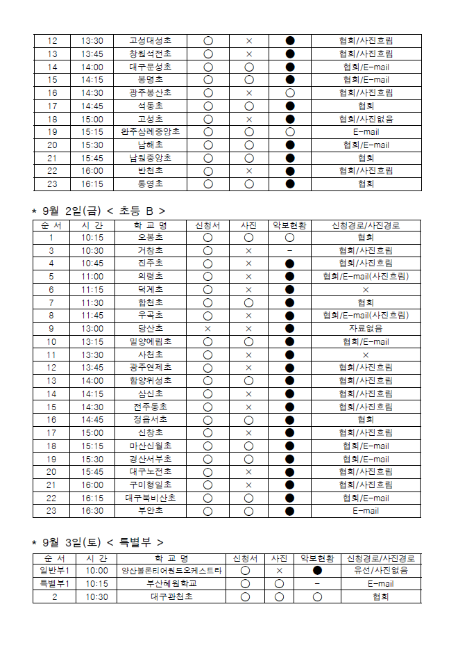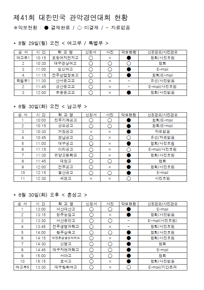 ***제41회 경연대회 현황표(문의 주시면 실시간으로 확인해드리겠습니다!!)