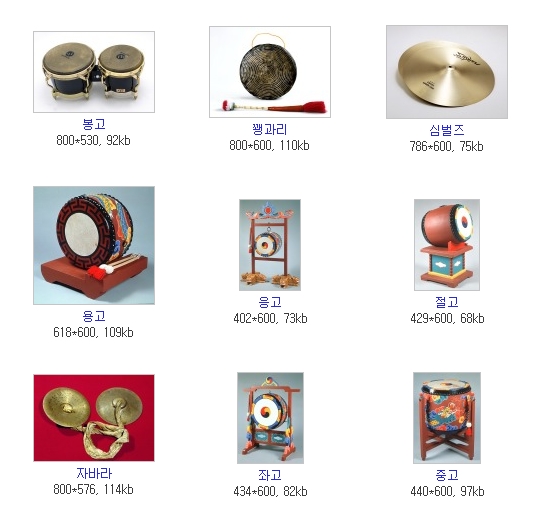 두드리거나 쳐서 음을 내는 악기를 가리키며, 마찰로 음을 내는 것도 있다. 붙어 있는 가죽을 두들기는 막명(膜嗚) 악기(북 종류)와 균질의 소재로 만들어져 그 자체로 음을 내는 체명(體嗚) 악기(심벌, 트라이앵글 등)로 분류할 수 있다. 또, 음계를 갖는 것과 갖지 않는 것으로도 나눌 수가 있는데, 음계를 갖는 타악기 중에 마림바나 비브라폰과 같이 발음체가 건반 위에 배열되어 있는 것을 건반 타악기라고 부르기도 한다. 손이나 북채 등으로 치거나 서로 맞부딪쳐 발음하는 악기와, 흔들어서 발음하는 악기의 총칭. 진동체의 형태와 상태에 따라 다음의 2종류로 분류된다. ① 막명악기(膜鳴樂器):원통과 팽팽한 가죽 등이 진동하는 것으로서, 팀파니*, 큰북 종류가 포함된다. ② 체명악기(體鳴樂器)*:탄성(彈性)을 지닌 단일 물질(나무, 금속 등)이 진동하는 것으로서, 트라이앵글*, 공*, 차임*, 실로폰* 등이 포함된다. 또 타악기에는 악음으로 보여지는 일정한 음고(音高)를 가진 것(팀파니, 실로폰, 차임 등)과 그렇지 않은 것(심벌즈*, 캐스터네츠*, 래틀* 등)이 있다.